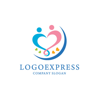 ハートは、愛情、絆、思いやりを象徴し、親しみやすい印象を与えます。二人の人物は、協力、調和、そして互いを尊重する姿勢を表し、企業が持つ温かい人間関係を表現します。青色は、信頼、誠実さ、そして安定性を象徴し、ピンク色は、優しさ、愛情、そして幸福感を意味します。カラフルな小さなハートたちは、多様な価値観、喜び、そして幸福の象徴です。医療機関、福祉施設、保育園、ウェディング関連、あるいはNPOなど、人々の愛情、絆、そして幸福をサポートする企業に最適です。