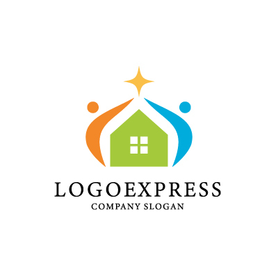 住宅を中心に、左右に人々が手を繋ぎ、頂上には明るい星が輝いています。このデザインは、家族の繋がり、住宅の温かさ、そして希望に満ちた未来を表現しています。住宅は安心と安全の象徴であり、家族が共に過ごす大切な場所を意味します。手を繋ぐ人々は、家族の絆や地域社会の協力を表し、共に支え合い、成長していく様子を象徴します。頂上の星は、希望、目標、そして明るい未来を照らす光を意味し、見る人に前向きな気持ちとインスピレーションを与えます。オレンジとブルーの配色が温かみと信頼感を与え、住宅、建設、不動産関連の企業に最適です。