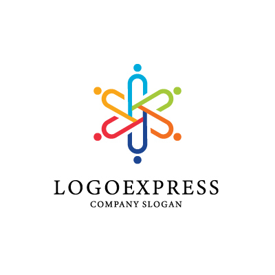 青、赤、緑、オレンジなど、様々な色が用いられていることは、多様な個性を持つ人々が集まり、協力することで大きな力を生み出すことを表しています。中央の形状は調和、協力、コミュニティを象徴し、関係するすべての当事者が共通の目標に向かって協力することを示唆しています。人々の手足のようなデザインは、支え合い、助け合う様子を表し、人とのつながりを大切にする姿勢を表現しています。IT、医療、福祉など、人々のつながりを重視し、社会に貢献する企業に最適です。
