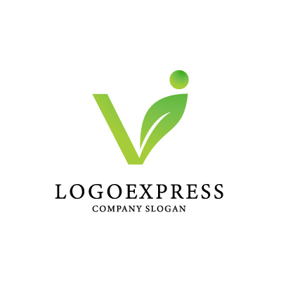 Vの文字、人と葉を組み合わせたロゴ [6824]