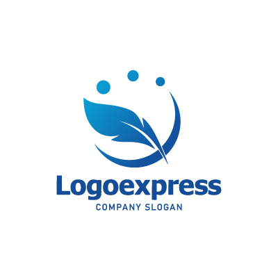 羽根は、知識、執筆、コミュニケーション、そして軽やかさを象徴し、企業の知的な側面やスムーズな伝達能力を表します。円弧は、保護や成長、繋がりを示唆し、3つのドットは、新しいアイデアやひらめき、またはデジタルな要素を表現しています。全体を包む青色は、信頼性、知性、そして誠実さを伝え、落ち着きとプロフェッショナルな印象を与えます。教育機関、出版社、ライティングサービス、法律事務所、コンサルティング、クリエイティブ関連、コミュニケーションを重視する企業などに最適です。