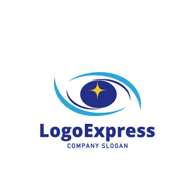 目はビジョン、洞察力、そして未来を見据える力を象徴し、瞳の中の星は希望、目標、インスピレーション、そして輝かしい可能性を表しています。青色は信頼性、知性、誠実さを伝え、水色の曲線は動きや保護、開放感を加えています。眼科、光学関連、テクノロジー企業、コンサルティング、教育機関、クリエイティブエージェンシー、未来志向のサービスなど、明確なビジョン、革新性、希望をアピールしたい業界に最適です。