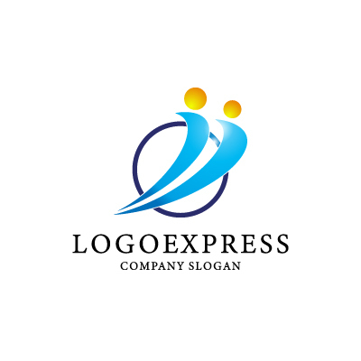 躍動するペアと円の協力ロゴ [6883]