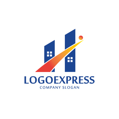 青いビルディングは安定性、信頼性、そして不動産や建設を象徴し、「H」はイニシャルとしての意味合いも持ちます。オレンジから黄色へのグラデーションのラインは、成長、進歩、活力、そして投資価値の上昇を表し、頂点の円は目標達成や成功、またはそこに住む人々を示唆しています。不動産開発、建設会社、住宅ローン、不動産投資、都市開発、建築設計事務所、あるいはイニシャルが「H」の企業などに最適です。