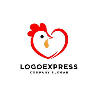 ハートは愛情、優しさ、そして温もりを象徴し、鶏は親しみやすさ、家庭的な雰囲気、そして食への感謝を表します。赤い色は、情熱、エネルギー、そして活力を伝え、全体として愛情と幸福感に満ちたイメージを表現します。鶏肉販売、卵販売、飲食店、ファミリーレストラン、食料品店、または愛情や温かさを大切にする企業などに最適です。