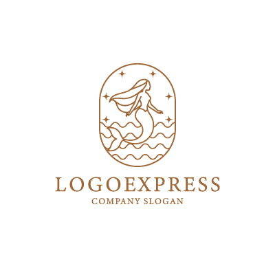 人魚は、美しさ、神秘、そして自由を象徴し、海は生命の源、豊穣、そして未知への探求心を表します。星は、希望、夢、そして輝かしい未来を示唆します。全体として、女性らしさ、優雅さ、そして神秘的な魅力を表現するロゴです。美容、エステ、スパ、ウェディング、ジュエリー、リゾート、または女性をターゲットとした商品やサービスなど、美しさ、優雅さ、そして神秘的な魅力をアピールしたい業界に最適です。