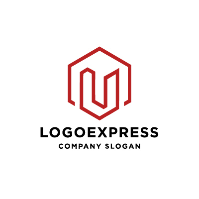 赤い六角形Uシンプルラインロゴ [6945]