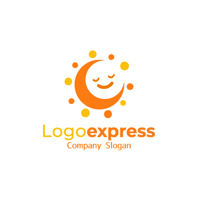 三日月は、穏やかさ、安らぎ、そして夢を象徴し、周囲の太陽は、暖かさ、希望、そして明るい未来を表しています。笑顔は、幸福感、親しみやすさ、そして満足を伝え、全体として、優しさ、安心感、そして楽しさを提供する企業イメージを表現します。ベビー用品、子供向けサービス、教育、またはリラックスや睡眠を促進する製品などに最適です。