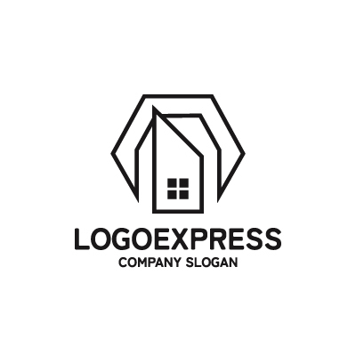 黒色の幾何学的な家ロゴ [7031]