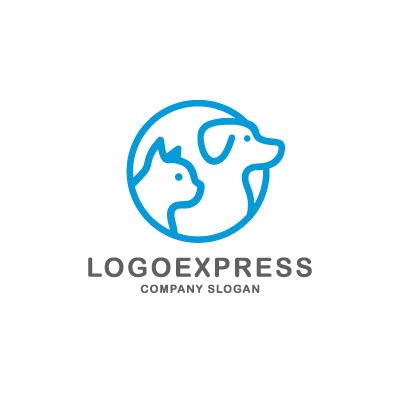 猫と犬は、ペット、愛情、そして癒しを象徴し、企業が動物を愛する人々に寄り添い、心の安らぎを提供するという姿勢を表します。円は、繋がり、調和、そして包括性を象徴し、企業が様々な種類のペットや飼い主を分け隔てなく歓迎するという意思をアピールします。青色は、信頼性、誠実さ、そして安心感を象徴し、企業が顧客に対して持つ安心感と信頼できるサービスをアピールします。シンプルな線で描かれたデザインは、清潔感があり、現代的な印象を与えます。ペットショップ、動物病院、またはペット関連商品販売企業など、動物を愛する人々をサポートし、信頼できるサービスを提供したい業界に最適です。
