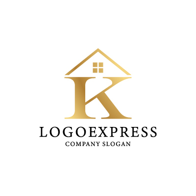 家は、安心感、安全、そして温かさを象徴し、企業が顧客に提供する快適な空間と心の安らぎを表します。屋根の上の窓は、希望、未来、そして明るさを象徴し、企業が顧客に対して持つ温かい気持ちと、明るい未来を創造するという意思を表現します。金色のアルファベット「K」は、高級感、豊かさ、そして成功を象徴し、企業が顧客に提供する価値のあるサービスと実績をアピールします。このロゴは、上品で洗練された印象を与えます。不動産関連企業、住宅リフォーム企業、または高級住宅販売企業など、安心感、高品質、そして信頼性をアピールしたい業界に最適です。