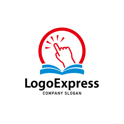 開かれた本は、知識、学習、そして情報伝達を象徴し、企業が顧客に提供する豊富な知識と情報に基づいたサービスをアピールします。赤い円は、情熱、エネルギー、そして行動力を象徴し、企業が持つ積極的な姿勢と目標達成への強い意志をアピールします。指で指している手のデザインは、インタラクティブ性、操作性、使いやすさを象徴し、同社が提供するサービスが直感的で使いやすいことを強調しています。教育関連企業、IT関連企業、またはアプリ開発企業など、知識、革新性、そして使いやすさをアピールしたい業界に最適です。
