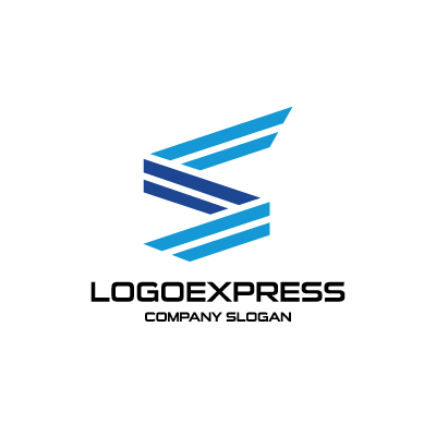 青色の幾何学的なスピード感のあるSロゴ [7171]