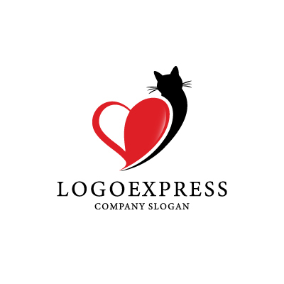 猫は、優雅さ、愛情深さ、そして独立心を象徴し、企業が提供する洗練されたサービスと温かいサポートを表現します。ハートは、愛情、幸福、そして感謝を象徴し、企業が顧客に対して抱く感謝の気持ちと愛情を表現します。黒と赤の組み合わせは、洗練、情熱、そして力強さを象徴し、顧客に対して洗練された印象と情熱的なサービスを提供する姿勢を表します。ペット関連企業、女性向け商品、ギフトショップなど、愛情、優雅さ、そして個性をアピールしたい業界に最適です。