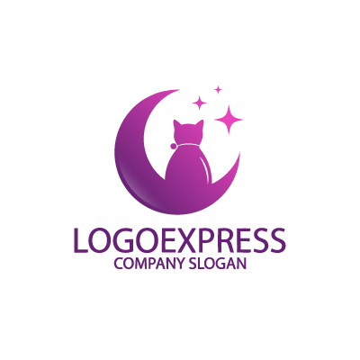 猫は、自由気まま、優雅さ、そして癒しを象徴し、企業が持つ柔軟な発想と洗練されたサービス、そして顧客に安らぎを与えることを表現します。月は、夢、希望、そして女性らしさを象徴し、企業が顧客の夢を応援し、希望に満ちた未来を創造する手助けをすることを示唆します。星は、輝き、目標、そして成功を象徴し、企業が顧客の成功を導く道しるべとなることを表現します。紫色は、創造性、神秘性、そして上品さを象徴し、顧客に対して魅力的で洗練された印象を与えます。ペット関連企業、女性向け商品、占い関連企業など、可愛らしさ、優雅さ、そして未来への希望をアピールしたい業界に最適です。