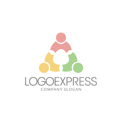 三人の人型は、チームワーク、多様性、そしてサポートを象徴し、企業が顧客、従業員、そして社会との良好な関係を築き、互いに協力し合うことを表します。三角形の空間は、安定感、バランス、そして調和を象徴し、企業が提供するサービスが安定しており、調和のとれたものであることを表現します。赤、黄、緑の配色パターンは、活力、創造性、そして成長を象徴し、顧客に対して温かく、活気のある印象を与えます。NPO法人、福祉施設、教育機関など、協調性、多様性、そして社会貢献を重視する団体に最適です。