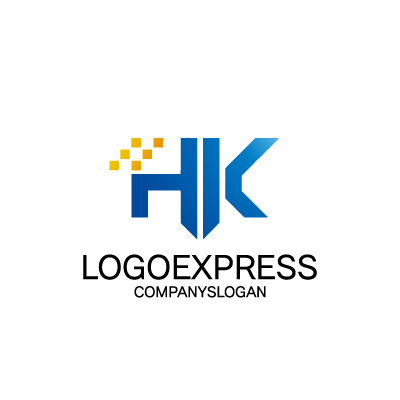 HとKは、企業名や個人のイニシャルを表し、親しみやすさと個性をアピールします。ピクセルは、デジタル、テクノロジー、そして革新性を象徴し、企業が持つ高度な技術力と、常に新しいことに挑戦する姿勢を表します。青色は、信頼、誠実さ、そしてプロフェッショナリズムを象徴し、顧客に対して安心感と信頼感を与えることを意図しています。黄色のピクセルは、エネルギー、創造性、そして活力を象徴し、企業が提供するサービスが活気にあふれ、創造性に富んでいることを表現します。IT企業、ソフトウェア開発会社、デジタルマーケティング会社など、テクノロジー、革新性、そして未来志向をアピールしたい業界に最適です。