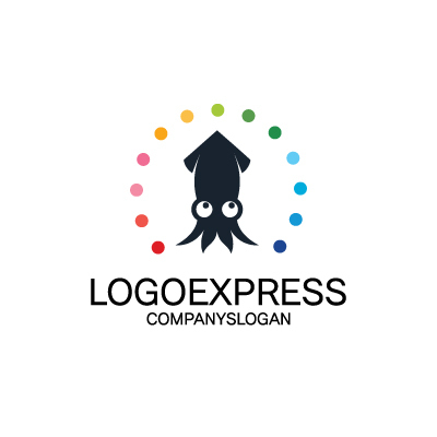 カラフルなドットとイカのロゴ [7327]