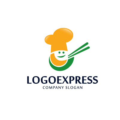 コック帽は、料理への情熱、技術、そしてプロフェッショナリズムを象徴し、企業が提供する料理が熟練された技術で作られ、高品質であることを表現します。笑顔は、親しみやすさ、温かさ、そして幸福感を象徴し、顧客に対して温かく、楽しい食事体験を提供することをアピールします。箸は、アジア料理、特に日本料理を連想させ、本格的な味と伝統をアピールします。オレンジ色と緑色の配色パターンは、食欲をそそる色であり、新鮮さ、自然、そして健康的なイメージを伝えます。レストラン、食品販売会社、キッチン用品店など、食に関する楽しさ、高品質、そして安心感をアピールしたい業界に最適です。