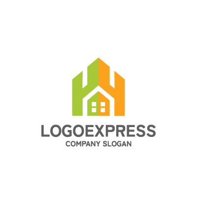 全体的な形は家を連想させるとともに、両側の「H」は左右対称で安定感があり、信頼できる企業であることをアピールします。緑色は、自然、環境、そして調和を象徴し、企業が環境に配慮した住まいづくりを心掛けていることを表現します。オレンジ色は、暖かさ、活気、そして創造性を象徴し、顧客に対して親しみやすく、創造性豊かな印象を与えます。建設会社、不動産会社、インテリアデザイン会社など、安心感、高品質、そして創造性をアピールしたい企業に最適です。