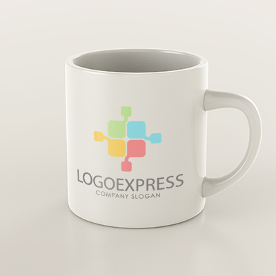 パステルカラーの正方形が、それぞれ接続されたユニークなロゴです。