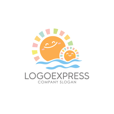 親子の太陽のような2つの太陽は、育成、愛情、親しみを表現し、企業が大切にしている温かい関係性をアピールします。波のデザインが、海、旅、そして自由を連想させ、新しい世界への挑戦をサポートする企業理念を表現します。全体的なパステルカラーの色使いが、ロゴ全体の印象を優しく、親しみやすいものにし、教育機関、子育て支援団体、旅行関連会社など、幅広い世代に安心感を与え、信頼を得たい企業におすすめです。
