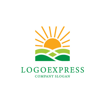 太陽は、エネルギー、希望、そして成長を象徴し、企業が提供する商品やサービスが人々に活力をもたらすことを表現します。緑の丘は、自然、豊かさ、そして健康を象徴し、企業が環境に配慮し、持続可能な社会を目指していることを示します。オレンジと緑の色は、温かさ、自然、そして安心感を象徴し、顧客に対して親しみやすい印象を与えます。農業関連企業、環境保護団体、または自然食品店など、自然を大切にするビジネスに最適です。