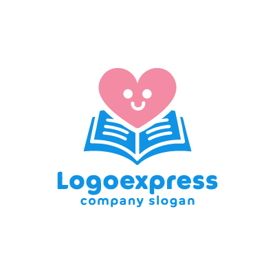 本は、知識、学習、そして知性を象徴し、企業が提供する教育や情報が、人々の成長を支えることを表現します。ハートは、愛情、優しさ、そして思いやりを象徴し、企業が顧客に対して温かい気持ちで接することを表します。笑顔は、親しみやすさ、喜び、そして幸福を象徴し、顧客に対して明るい印象を与えます。青とピンクの組み合わせは、信頼感、優しさ、そして希望を象徴し、教育関連企業にふさわしい配色です。学習塾、図書館、または教材販売など、教育と愛情を大切にするビジネスに最適です。