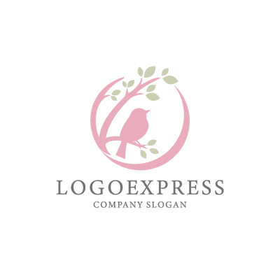 鳥は、自由、平和、そして希望を象徴し、企業が提供する商品やサービスが、人々に安らぎと幸福をもたらすことを表現します。木の枝と葉は、自然、成長、そして調和を象徴し、企業が環境に配慮し、持続可能な社会を目指していることを意味します。ピンク色は、優しさ、愛情、そして女性らしさを象徴し、顧客に対して温かい印象を与えます。美容関連企業、エステサロン、またはウェディング関連ビジネスなど、美しさと優しさをアピールしたいビジネスに最適です。