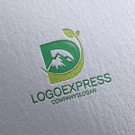 Dの文字と山と葉っぱのオーガニックロゴ [7529]