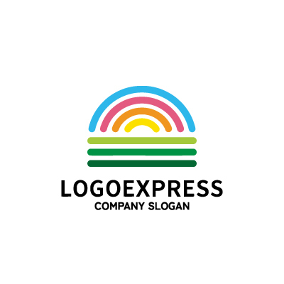 丘と虹のカラフルな自然ロゴ [7568]