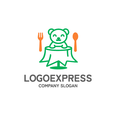クマと食卓の可愛いレストランロゴ [7581]