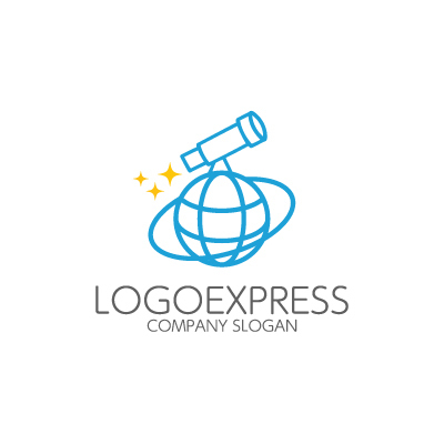 地球儀は、グローバルな視野、国際性、そして幅広い知識を象徴し、企業が持つグローバルなネットワークと、国際的な舞台で活躍する力を表現します。望遠鏡は、探求心、未来への展望、そして目標達成への強い意志を象徴し、企業が常に新しい可能性を探求し、未来を切り開いていくことを意味します。青色は、信頼感、誠実さ、そして洗練された印象を与え、顧客に対して安心感と信頼感を与えます。国際貿易会社、コンサルティング会社、または研究機関など、グローバルな視点と未来志向を持つ企業に最適です。