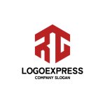 アルファベットの「R」と「G」を組み合わせ、六角形の家のような形にした、現代的で幾何学的なロゴです。