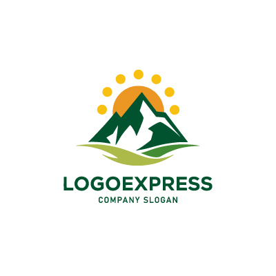 山は、安定、信頼、そして挑戦を象徴し、企業が困難を乗り越え、目標達成に向けて努力することを表現します。太陽は、エネルギー、希望、そして活力を象徴し、企業が提供する商品やサービスが、人々に活力をもたらすことを願う気持ちを表します。緑色は、自然、調和、そして健康を象徴し、企業が環境に配慮し、持続可能な社会を目指していることを意味します。アウトドア用品店、旅行会社、または環境保護団体など、自然と人々の健康を大切にするビジネスに最適です。