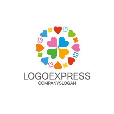 ハートは、愛情、優しさ、そして繋がりを象徴し、企業が顧客や社会との温かい関係を築くことを重視していることを表現します。クローバーは、幸運、希望、そして繁栄を象徴し、企業が顧客に幸運をもたらし、共に成長することを願う気持ちを表します。様々な色が使用されていることで、楽しさと多様性のあるイメージを表現しています。結婚相談所、ギフトショップ、または福祉関連企業など、愛情と幸福を届けるビジネスに最適です。