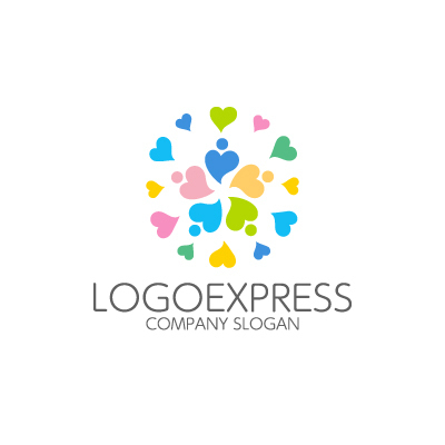 カラフルなハートと人々のつながりのロゴ [7637]