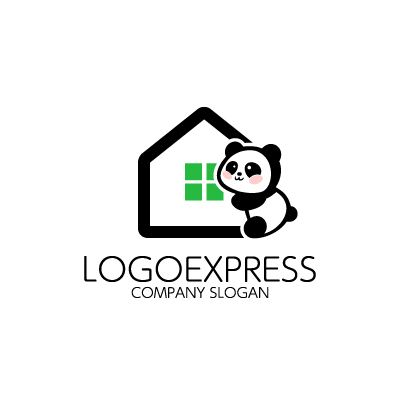 可愛いパンダと家のロゴ [7712]
