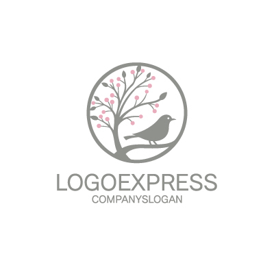 美しい円形の木と鳥のロゴ [7732]