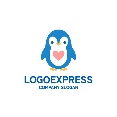 青色は、信頼性、誠実さ、そして安定感を象徴し、企業が持つ安心感と信頼性を表現します。ペンギンは、賢さ、協調性、そして順応性を意味し、企業の持つ柔軟性と多角的な対応力を示唆します。ハートは、愛情、優しさ、そして温かさを象徴し、企業のサービスが顧客に寄り添い、心を込めてサポートすることを表現します。子供向け商品、教育、福祉、または地域密着型のサービスを提供する企業など、親しみやすさ、信頼性、そして温かいサービスを重視する業界に最適です。