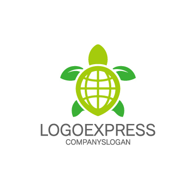 地球と葉を背負うエコなカメのロゴ [7895]