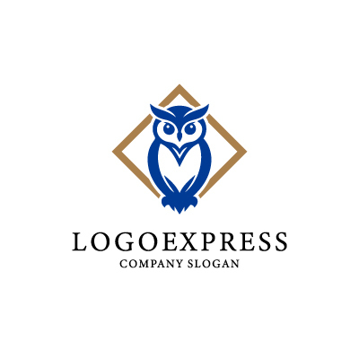 青色は、信頼、誠実さ、そして知識を象徴し、企業が持つ専門性と安心感を表現します。フクロウは、知恵、洞察力、そして知識を意味し、企業のサービスが顧客に最適な解決策を提供することを示唆します。菱形は、安定感、信頼性、そして方向性を示し、企業の確固たる基盤と目標達成への意志を表現しています。教育、コンサルティング、法律事務所、または研究機関など、知識、専門性、そして信頼性を重視する業界に最適です。