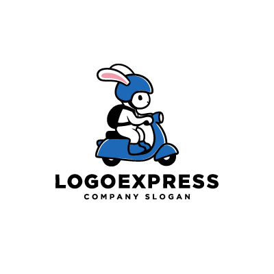 青色は、信頼、誠実さ、そして安心感を象徴し、企業が持つ安全で確実なサービスを表現します。ウサギは、迅速さ、可愛らしさ、そして親しみやすさを意味し、企業のサービスがスピーディーかつ丁寧であることを表現します。スクーターは、機動性、迅速性、そして効率性を意味し、企業のサービスが広範囲に迅速に届くことを示唆します。デリバリーサービス、宅配、オンラインショッピング、または地域密着型のサービスを提供する企業など、迅速性、信頼性、そして親しみやすさを重視する業界に最適です。