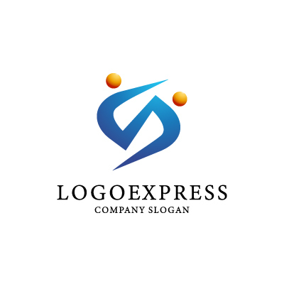流れるようなS字は、人と人との繋がり、コミュニケーション、柔軟性を表し、顧客との円滑な関係を築く姿勢を伝えます。向かい合う人型のシルエットは、協力、支援、信頼関係を象徴します。洗練された青色の配色とアクセントのオレンジ色が、プロフェッショナルでありながらも親しみやすい印象を与えます。人材派遣、コンサルティング、教育など、人と人との繋がりを大切にし、成長を支援する企業に最適です。