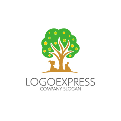 子供とウサギと木のロゴ [8271]