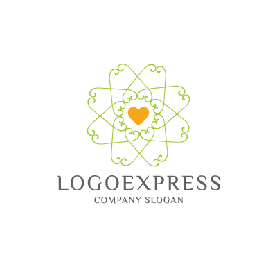ハートは、愛情、優しさ、そして温かい気持ちを象徴し、顧客に対して親しみやすく、愛情深い印象を与えます。装飾模様は、美しさ、洗練、そして優雅さを象徴し、ブランドの高級感を高めます。緑とオレンジの配色は、自然、調和、そして幸福感を象徴し、顧客に対して心地よく、癒やされるような印象を与えます。ウェディング関連企業、美容関連企業、またはギフトショップなど、愛情、美しさ、そして幸福をアピールしたい業界に最適です。