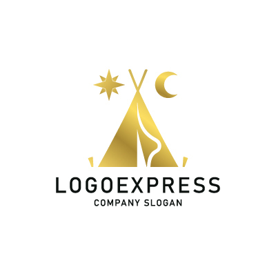 ティピーテントは、冒険、自由、そして温もりを象徴し、企業が提供する空間や体験が、顧客に非日常的な感動と安らぎを与えることを表現します。星は、夢、希望、そして未来を象徴し、企業が顧客の夢を叶え、輝かしい未来へと導く存在であることを表現します。月は、静けさ、安らぎ、そして癒やしを象徴し、企業が顧客に心安らぐ時間と空間を提供することへの想いを表現します。金色は、高級感、洗練さ、そして価値を象徴し、企業が提供する商品やサービスが、高品質で特別なものであることを表現します。グランピング施設、アウトドアブランド、旅行会社など、冒険心、癒やし、そして上質な体験をアピールしたい企業に最適です。