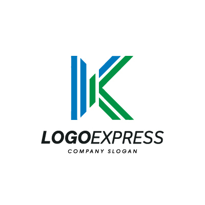 Kの文字は、企業名やブランド名を象徴し、企業の個性を表現します。青色は、信頼性、安定性、そして知性を象徴し、企業が持つ確かな技術力と、信頼できるプロフェッショナルなイメージを表現します。緑色は、成長、調和、そして持続可能性を象徴し、企業が顧客の成長を支援し、社会に貢献する姿勢を表現します。シャープなラインと、直線的なデザインは、効率性、明瞭性、そして未来志向を象徴し、企業が持つ革新的で、スピーディーなイメージを表現します。IT企業、コンサルティング企業、法律事務所など、信頼性、革新性、そして成長をアピールしたい企業に最適です。