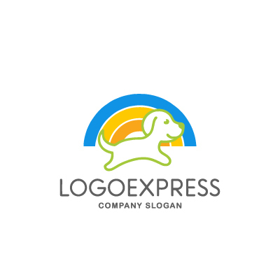 虹に向かって走る愛らしい犬のロゴ [8623]