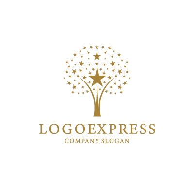 木は、成長、安定、そして未来への発展を象徴し、企業が顧客と共に成長し、繁栄していくことを願う気持ちを表現します。星は、目標、夢、そして成功を象徴し、企業が顧客の目標達成を支援し、輝かしい未来を照らす存在であることを表現します。大小さまざまな星が散りばめられたデザインは、多様性、個性、そして調和を象徴し、企業が顧客の多様なニーズに対応し、それぞれの個性を尊重する姿勢を表現します。金色は、高級感、価値、そして信頼性を象徴し、企業が提供するサービスや商品が、高品質で価値のあるものであることを表現します。教育機関、人材育成企業、金融機関など、成長、成功、そして未来への導きをアピールしたい企業に最適です。